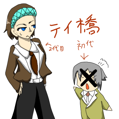 なんと言うべきか・・シンプルホワイトと言うべきでしょうか。。二代目を元に擬人化してみたが、白さ際立つシンプルのよさってのが感じられた。。また、謎多き橋と聞いて無口クールな白い少年のイメージが浮かび上がった。
