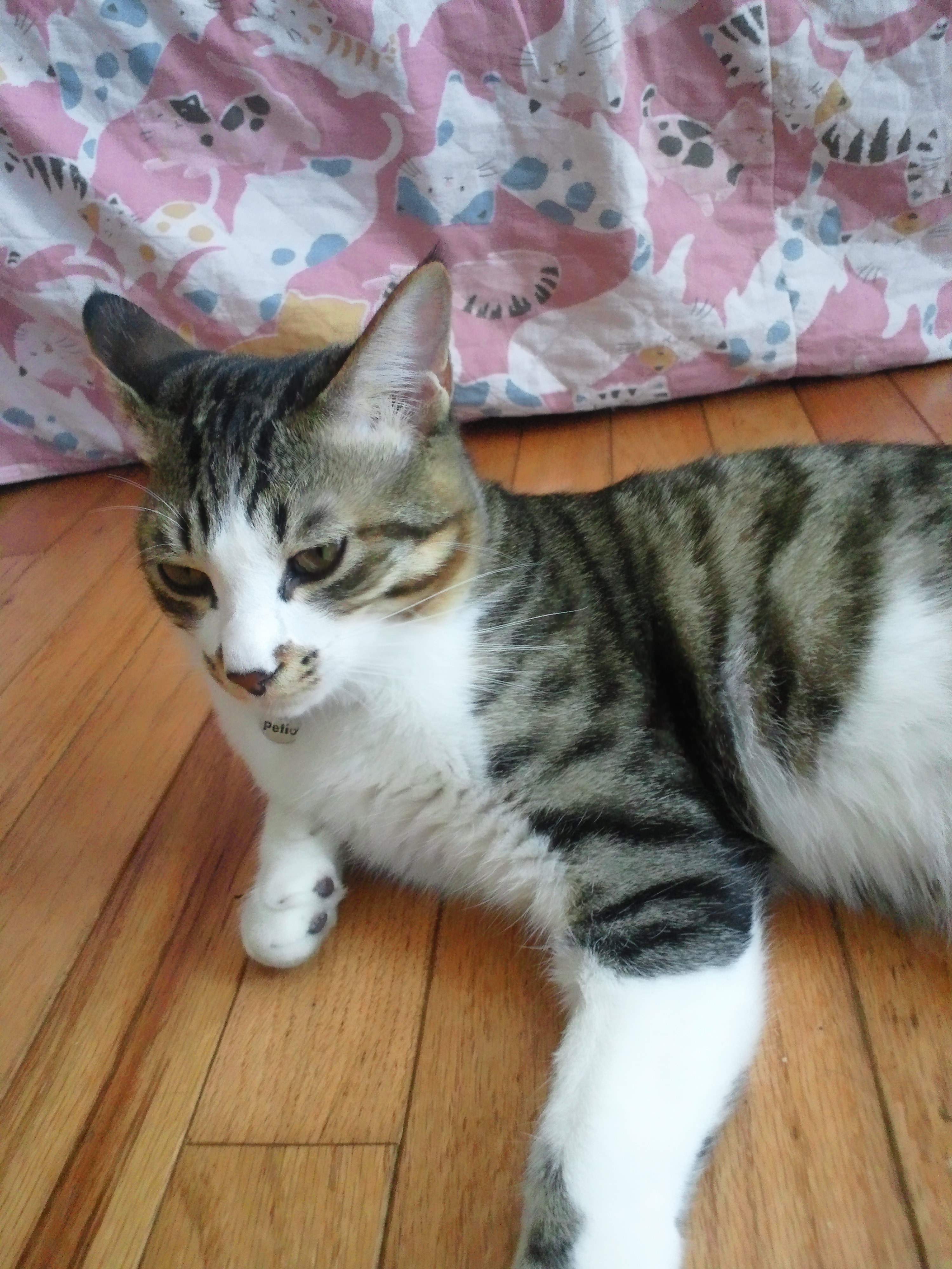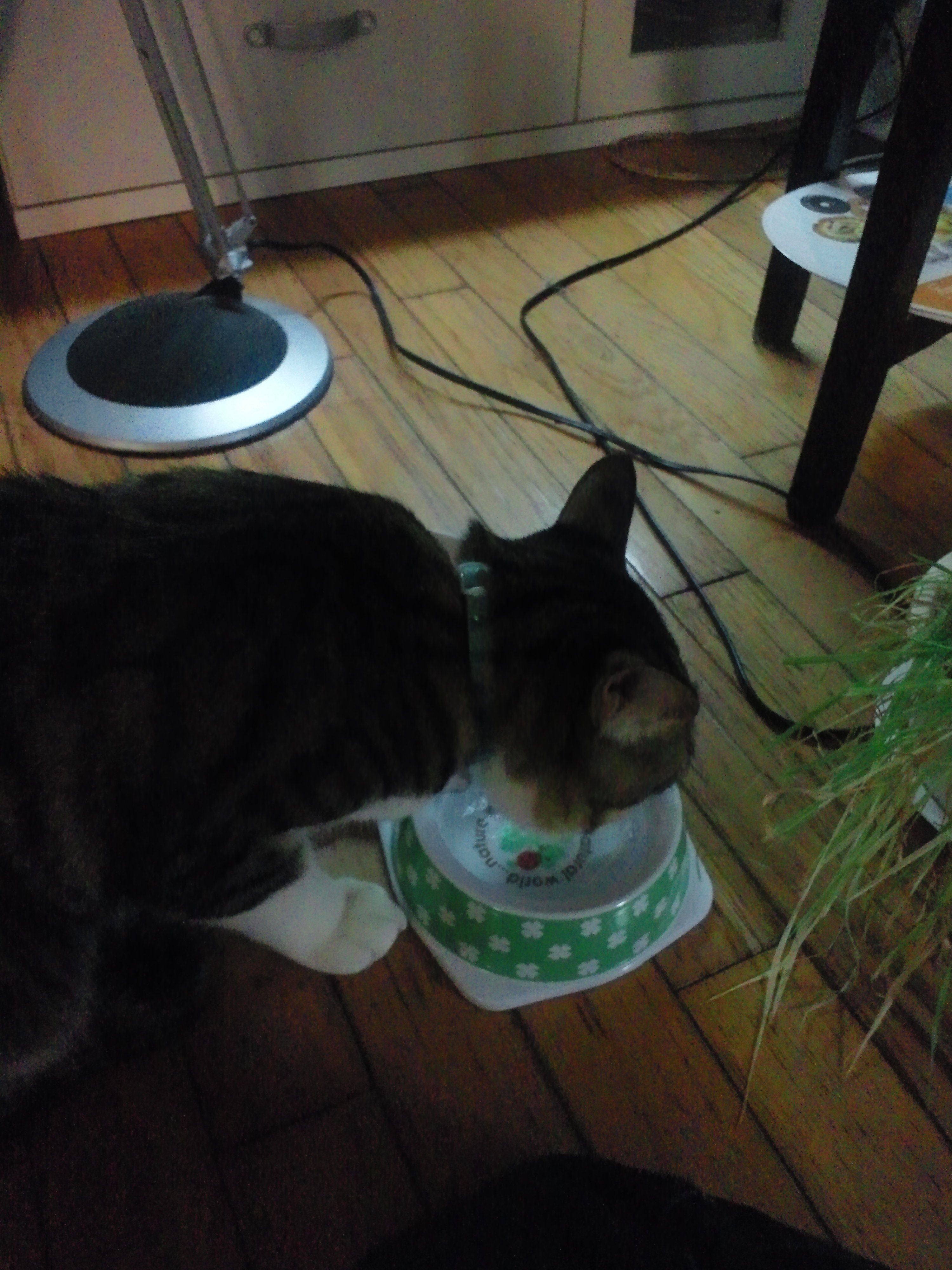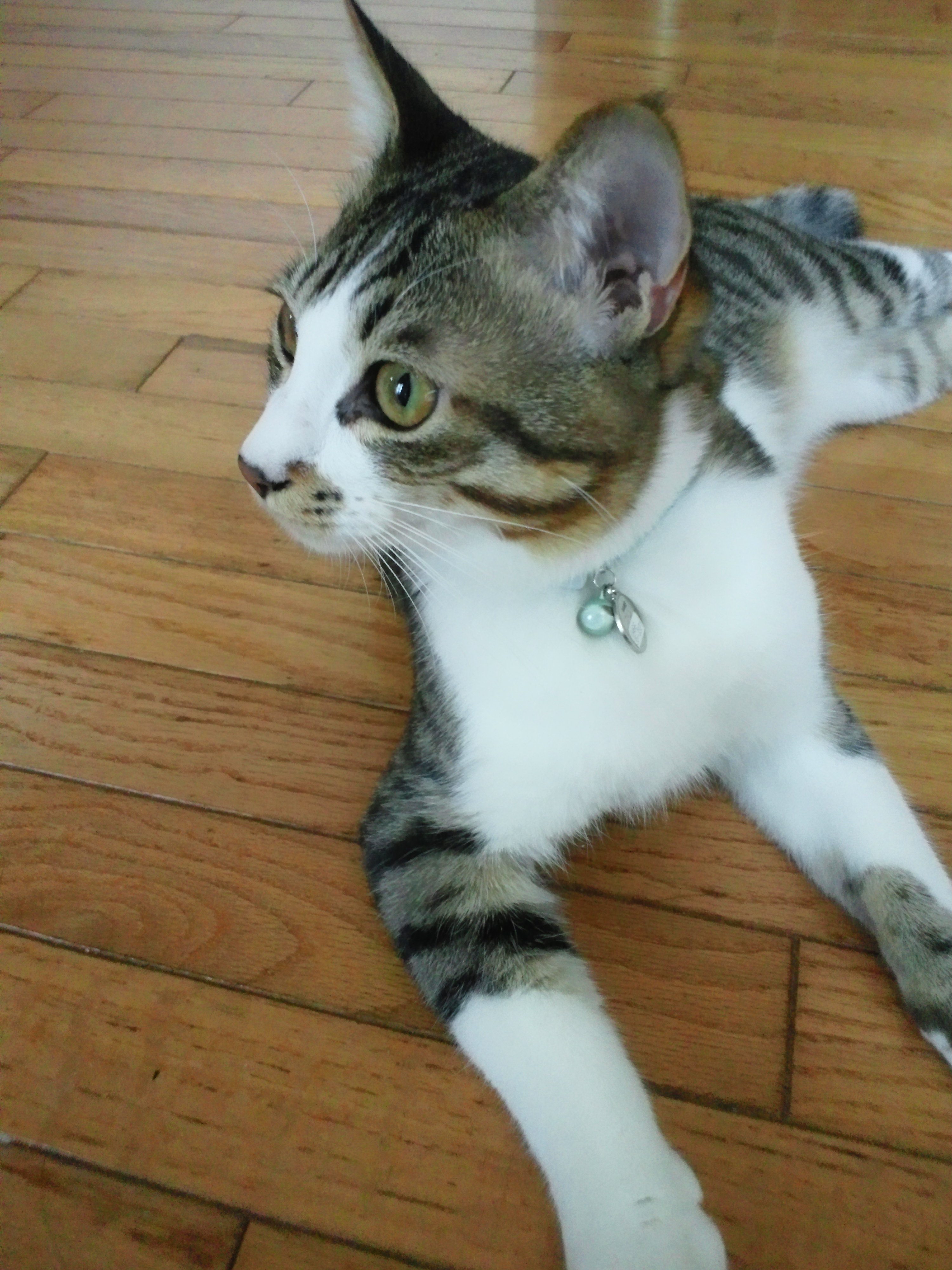 最近、毎朝9時頃になると文ちゃんが部屋を訪ねに来ます。うちはニャアニャア鳴く声に起こされます。。