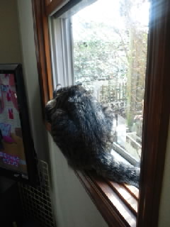 そして文ちゃん、ガラスに映った自分に大興奮。飛びついたり登ったりと大変だったわさ…